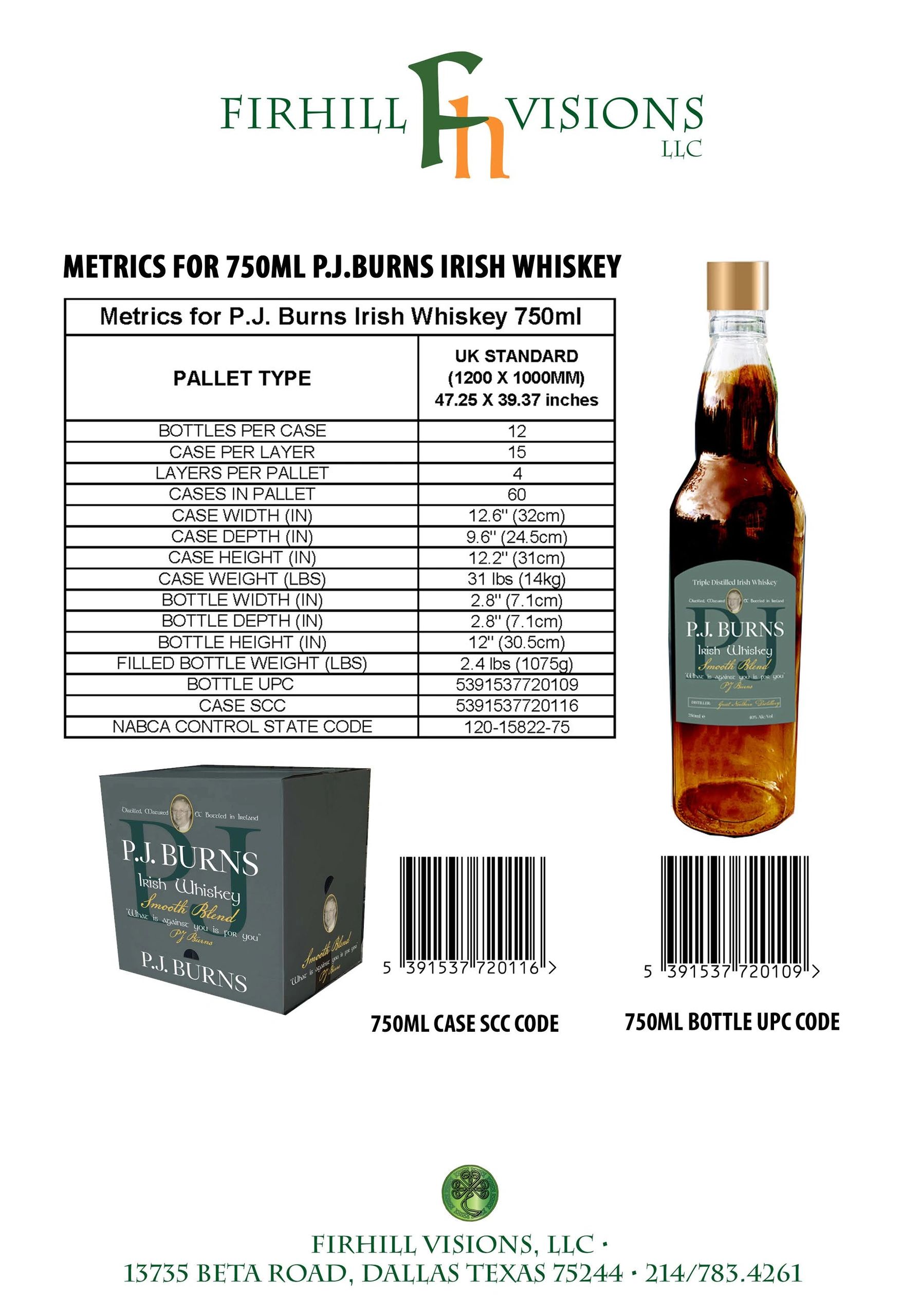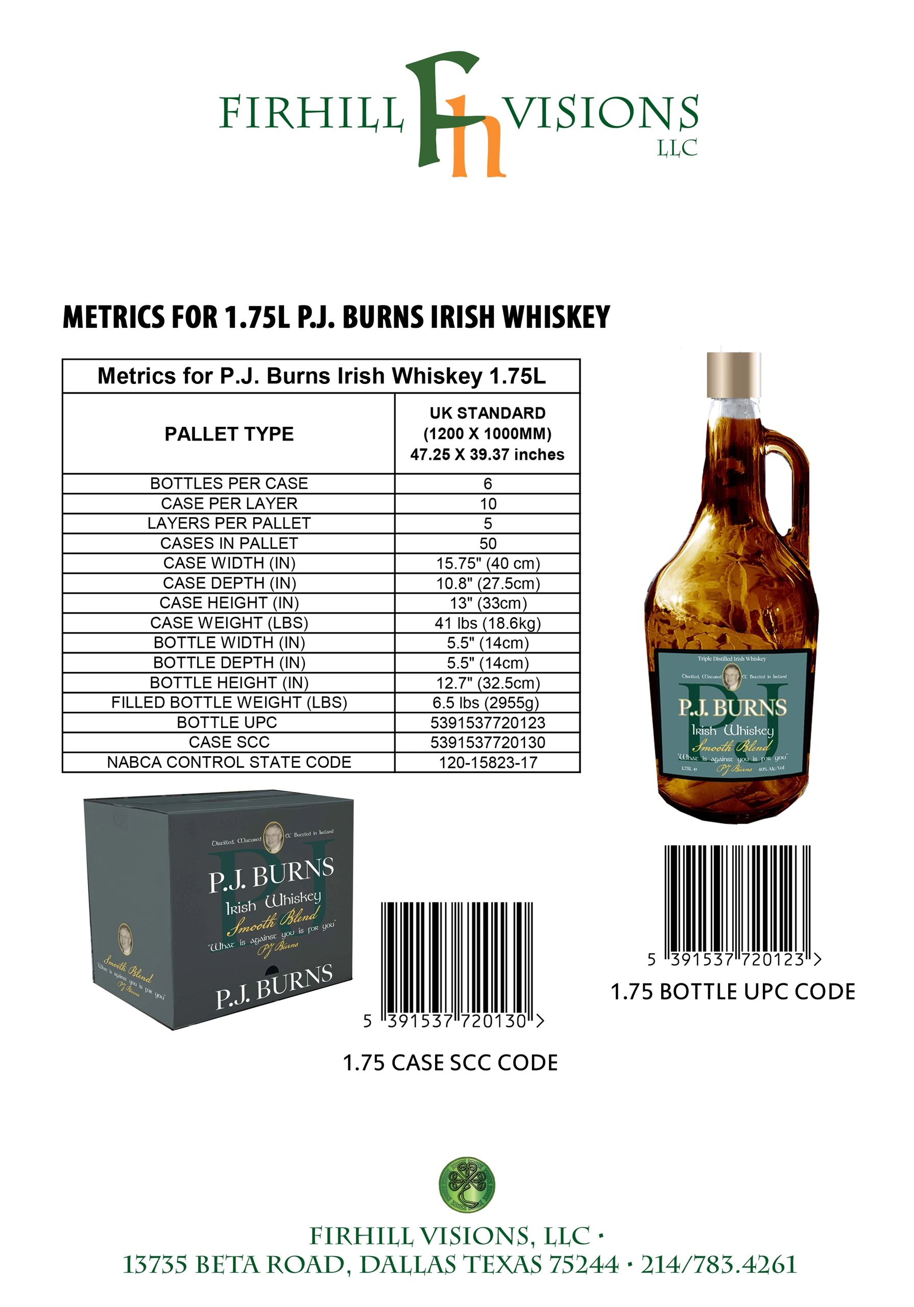 P.J.BURNS IRISH WHISKEY, 1.75L